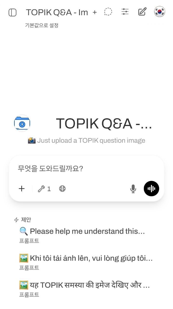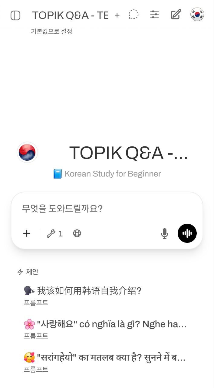 TOPIKBOT là giải pháp học tiếng Hàn cá nhân hóa bằng AI tiên tiến, giúp bạn luyện nói chuẩn bản xứ mọi lúc mọi nơi và nhanh chóng nâng cao kỹ năng TOPIK.