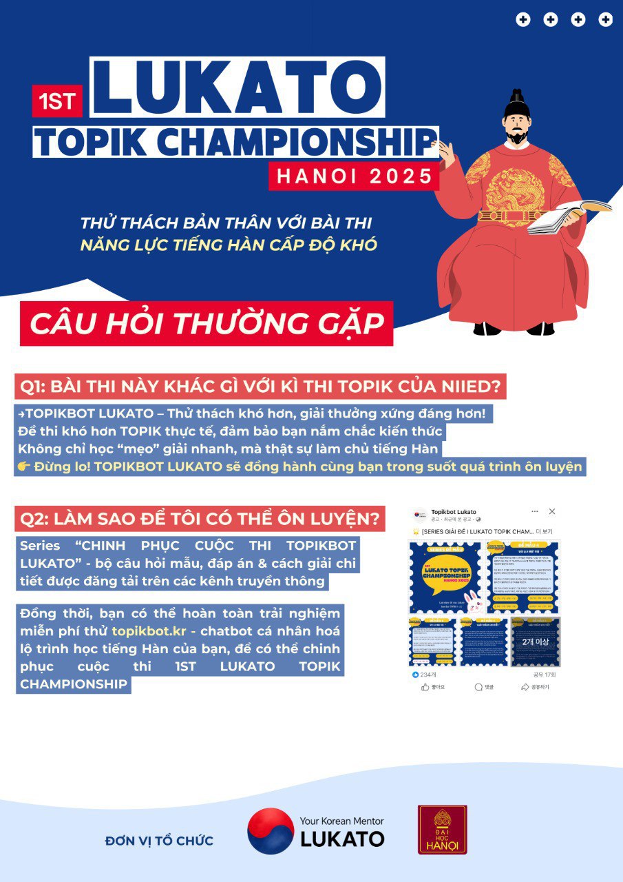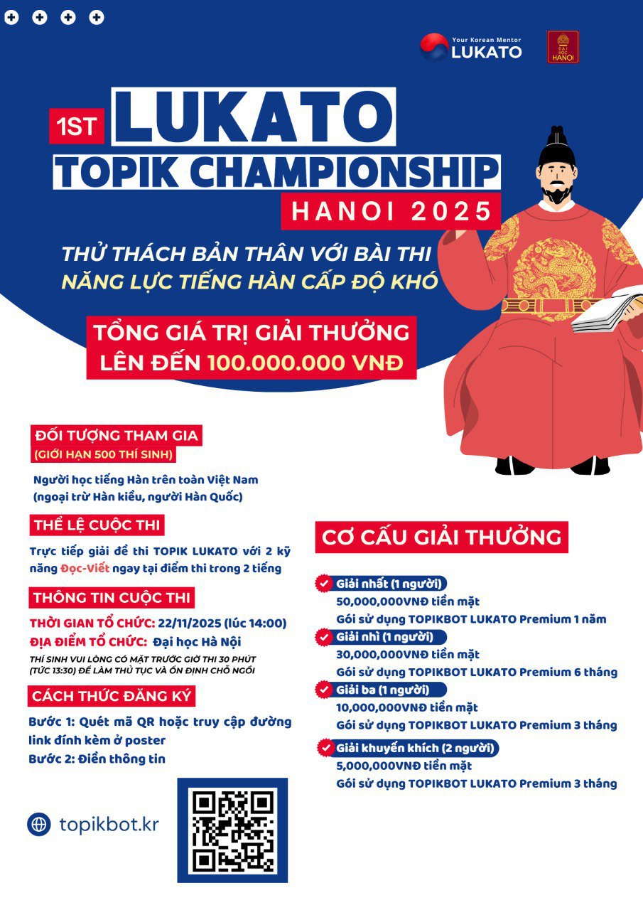 TOPIKBOT LUKATO không chỉ là cuộc thi thông thường, mà là sự kiện đổi mới đánh giá kỹ năng TOPIK bằng AI TOPIKBOT tiên tiến.