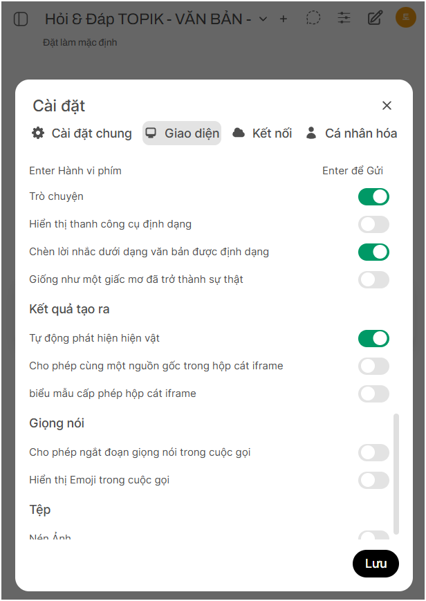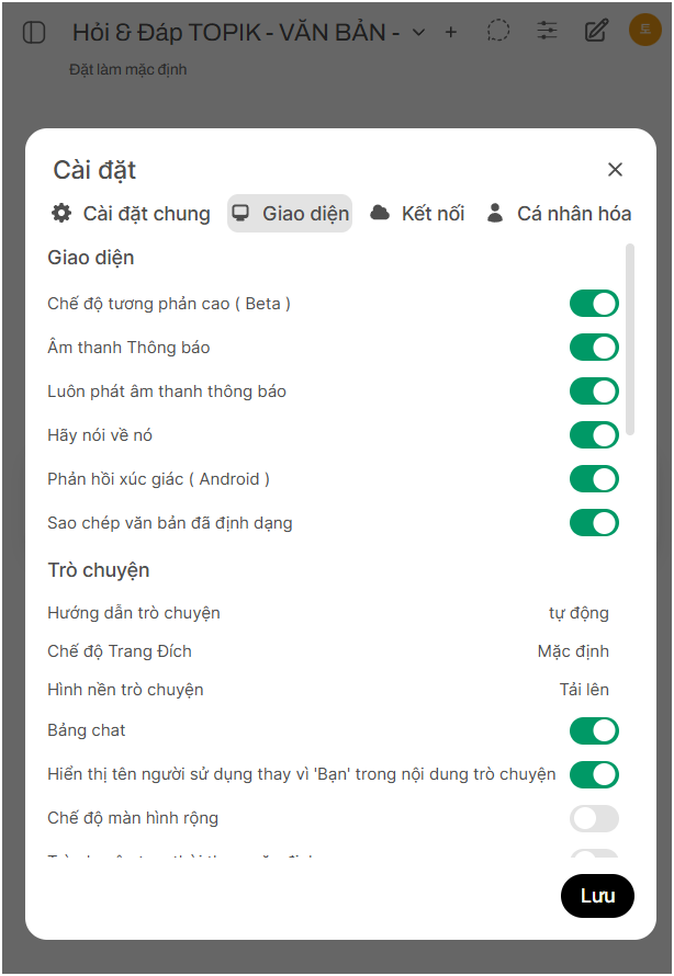2. Trò chuyện (Chat) Các cài đặt liên quan đến cách hoạt động của cửa sổ trò chuyện.